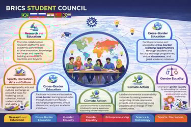 The BRICS Student Council was founded to empower and unite students across BRICS nations and beyond fostering academic collaboration, knowledge exchange, and leadership development. Recognizing the pivotal role that young scholars play in shaping the future, BSC serves as a dynamic platform where students can engage in meaningful dialogue, drive innovation, and contribute to sustainable development.